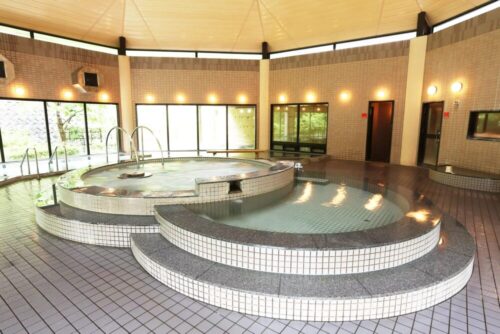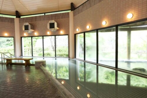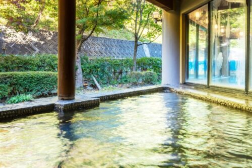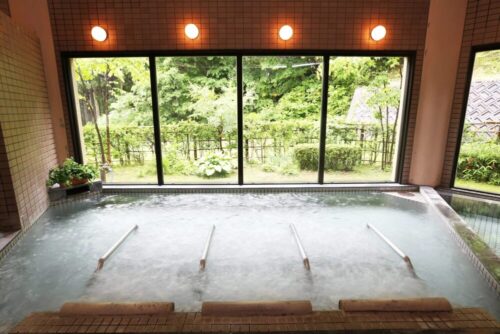 鷹の湯温泉は、水深130cmの「立ち湯」や混浴の露天風呂もあり人気です。