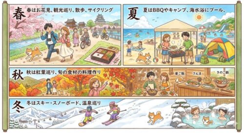 - 夏は BBQやキャンプ、海水浴にプール、